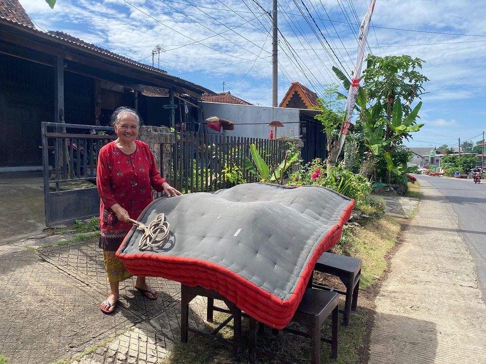 Sejak pagi hari, Kamis (29/5/2025), ribuan kasur berwarna merah dan hitam dijemur secara serempak di depan rumah-rumah warga. Warna kasur yang seragam menjadi pemandangan khas yang hanya bisa ditemui saat ritual ini berlangsung. Warga tampak membersihkan kasur dengan cara memukulnya menggunakan penebah dari rotan untuk menghilangkan debu yang menempel.