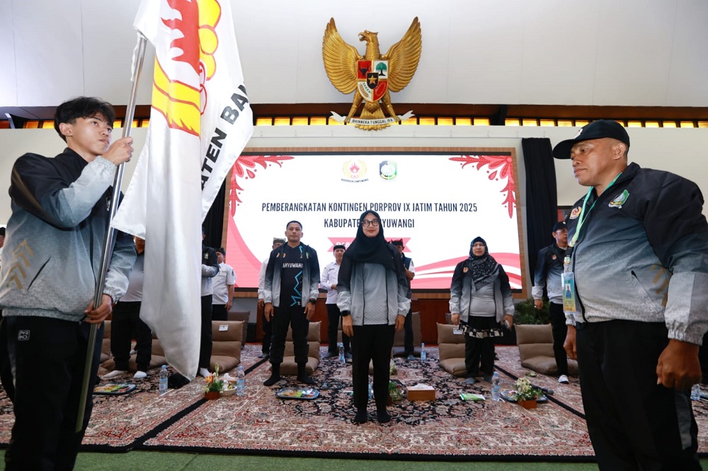 radiovisfm.com – Bupati Banyuwangi Ipuk Fiestiandani memberangkatkan Kontigen Banyuwangi untuk Pekan Olahraga Provinsi (Porprov) IX 2025, Rabu (19/6/2025). Ia meminta para atlet untuk menjunjung tinggi sportivitas dan menjaga nama baik Banyuwangi.