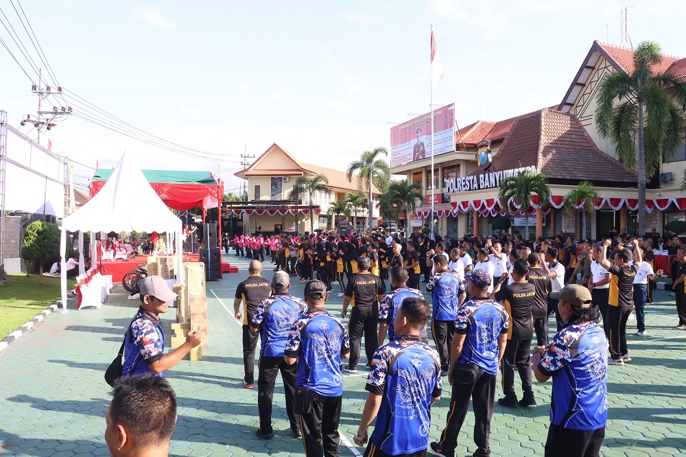 Kapolresta Banyuwangi, Kombes Pol Rama Samtama Putra, S.I.K., M.Si., M.H., hadir langsung memimpin jalannya kegiatan. Kapolresta menegaskan bahwa momentum HUT RI bukan sekadar seremoni, tetapi pengingat akan pentingnya persatuan dan kolaborasi lintas institusi.