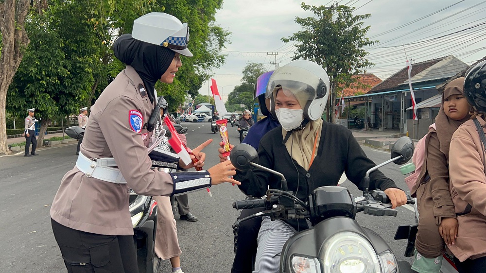 Selain membagikan coklat dan bendera, para Polwan juga menyampaikan imbauan terkait keselamatan berlalu lintas. Mereka mengingatkan pengendara untuk selalu mematuhi rambu-rambu lalu lintas dan mengutamakan keselamatan diri serta orang lain.