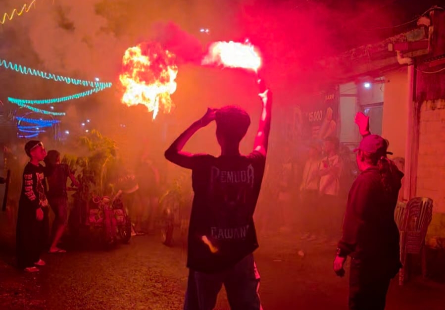 Sejak sekitar pukul 19.00 WIB, masyarakat memadati area kampung untuk mengikuti berbagai kegiatan budaya seperti pencak obor, kesenian kuntulan khas Banyuwangi, hingga permainan meriam bambu.
