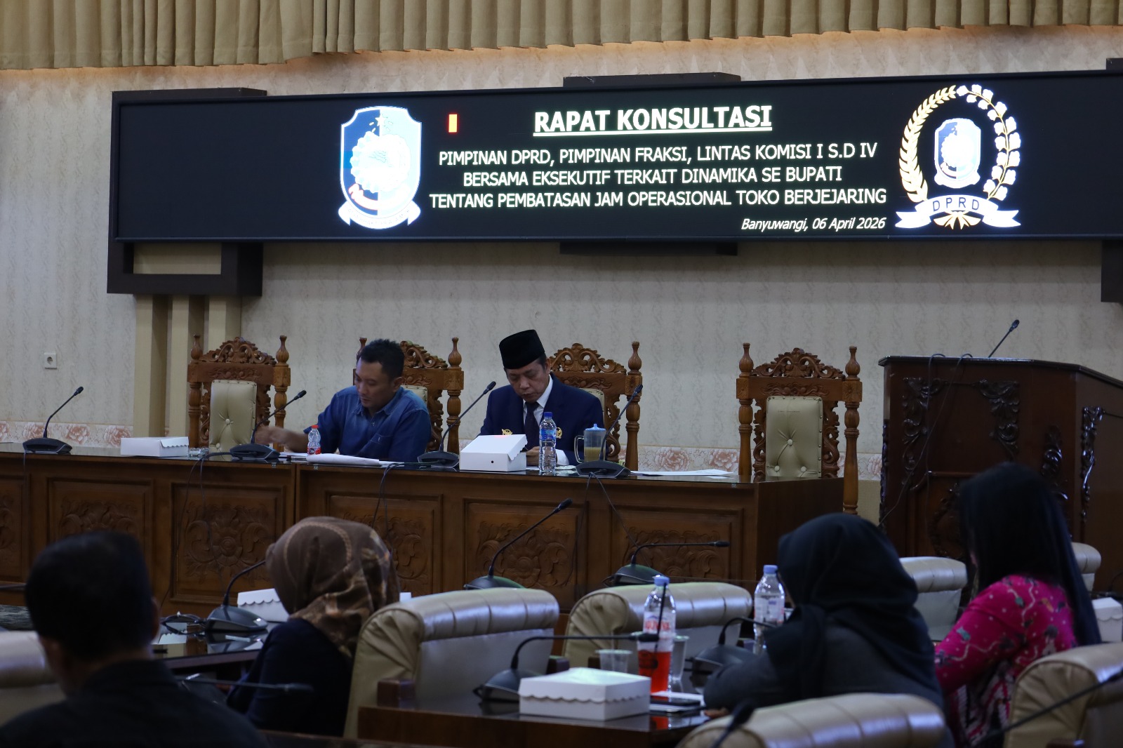 radiovisfm.com – Dewan Perwakilan Rakyat Daerah (DPRD) Kabupaten Banyuwangi minta eksekutif untuk mencabut Surat Edaran (SE) Nomor : 000.8.3/442/429.107/2026 tentang Penegasan Jam Operasional dan Kepatuhan Regulasi Toko Swalayan, Minimarket, Supermarket, Hypermarket, Departemen Store, Karaoke Keluarga, Kafe dan Billiard Center.