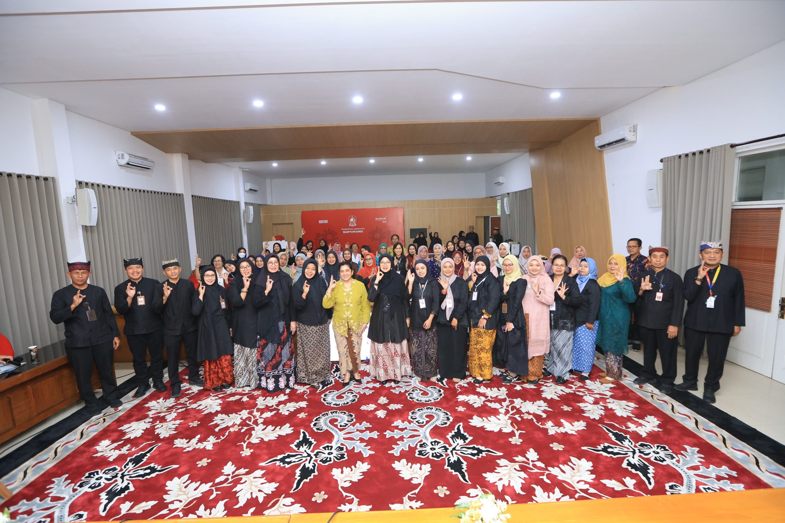 Kegiatan ini diikuti puluhan perempuan dari berbagai latar belakang, mulai dari organisasi kemasyarakatan, keagamaan, tenaga kesehatan, pelaku usaha, hingga komunitas literasi dan pendamping sosial, yang berlangsung di Aula Minak Jinggo, Kantor Pemkab Banyuwagi, Selasa (21/4/2026).